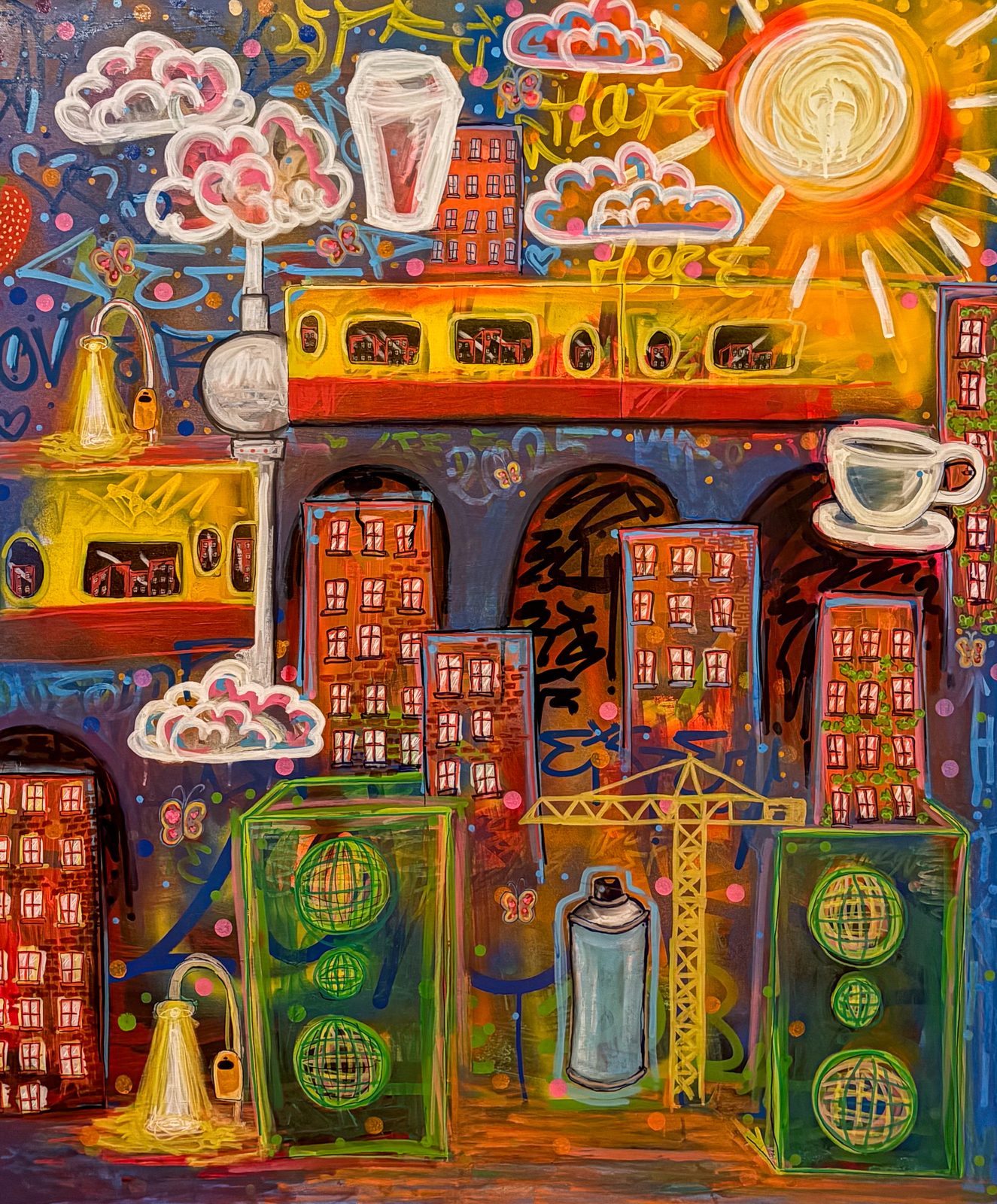 Diese startet metaphorisch mit der S-Bahn, die genau wie die Ringbahn im Kreis ihre Runden dreht. Der erzählerische Loop wird visualisiert und bedeutet das Neuschöpfen von Hoffnung. Es folgen persönliche Geschichten auf Leinwand, voller Ausdruck, Emotion und Tiefe. Wolken mit Gehirnstruktur, Lichtquellen, Blumen, Häuser, Musikboxen, Graffiti, Schmetterlinge, Sonne und Mond – sie alle symbolisieren auf eine unterschiedliche Weise Ekstase, Liebe und Einsamkeit in der Großstadt.